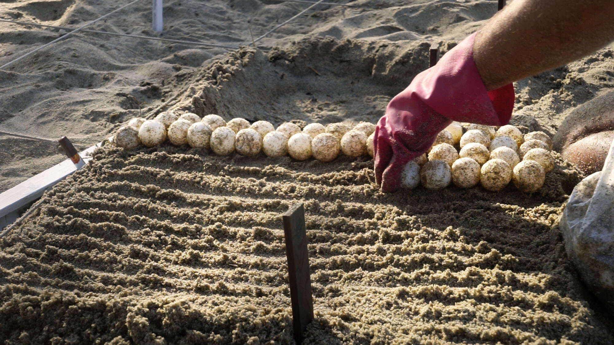 Raphael Reichl portraitiert in seiner Installation zwei gegenläufige Dynamiken in der mexikanischen Hafenregion „Puerto Escondido“. Im Zentrum stehen Verstecke, Zufluchtsorte und Brutstätten, die durch den globalen Kapitalismus transformiert bzw. zerstört werden. Reichl zeigt Arbeitende, die unter prekären Bedingungen Hideaways für Urlauber*innen bauen. Und parallel dazu eine junge Frau, die mit bloßen Händen kleine Refugien für Schildkröten schafft: sie gräbt Sand-Nester, um die Schildkröten-Eier zu schützen.