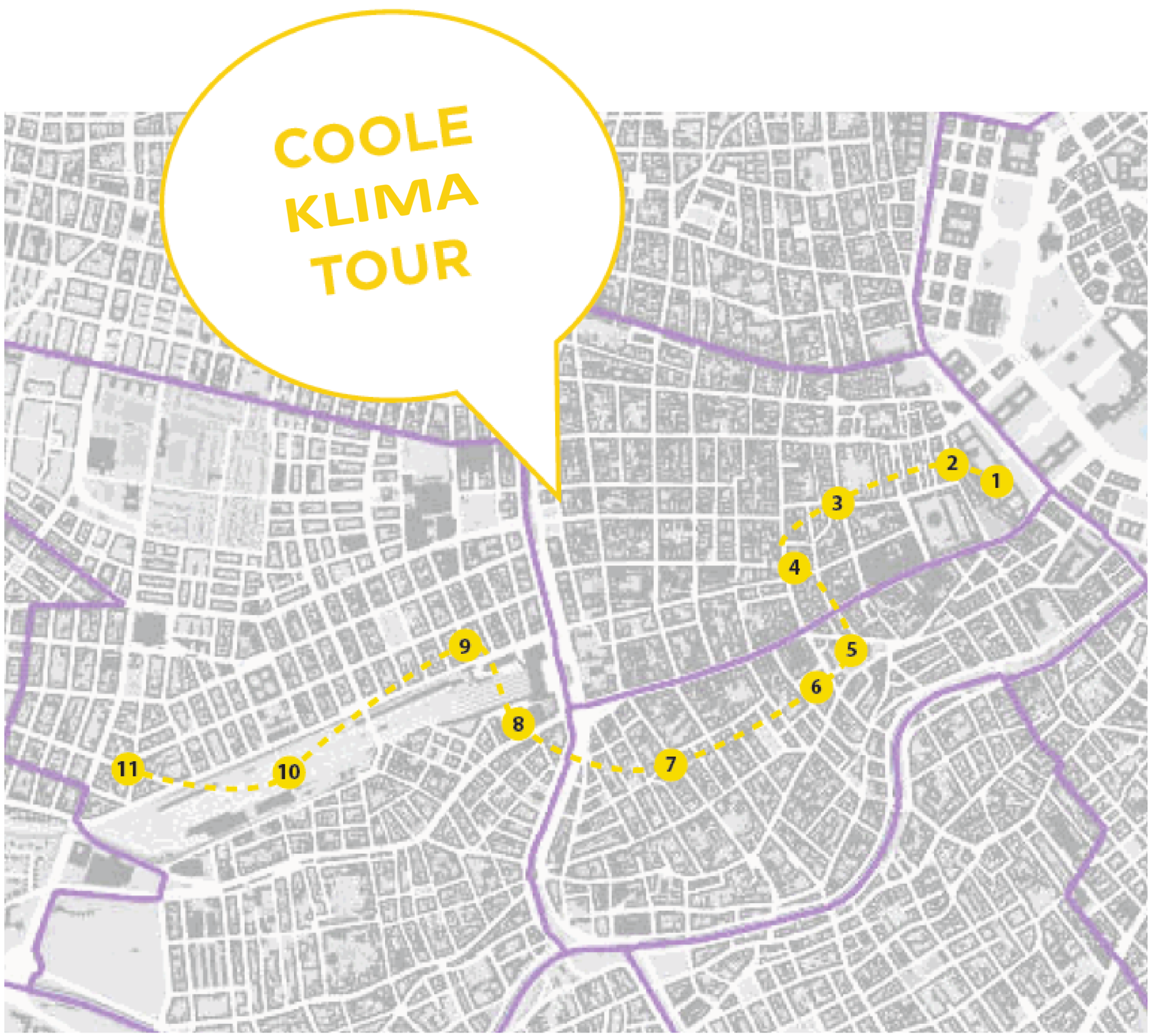 Der Rundgang über das Festivalareal (DE) bietet einen informativen Überblick über die Klima Biennale. Vorgestellt werden das architektonische Konzept der von StudioVlayStreeruwitz in Zusammenarbeit mit Isolde Rajek gestalteten Klima Commons, die Überblicksausstellung Design with a Purpose von der Vienna Design Week und die Biofabrique Vienna, ein Pilotprojekt der Wirtschaftsagentur Wien und Atelier LUMA, in Partnerschaft der TU Wien (Institut für Architektur und Entwerfen).
